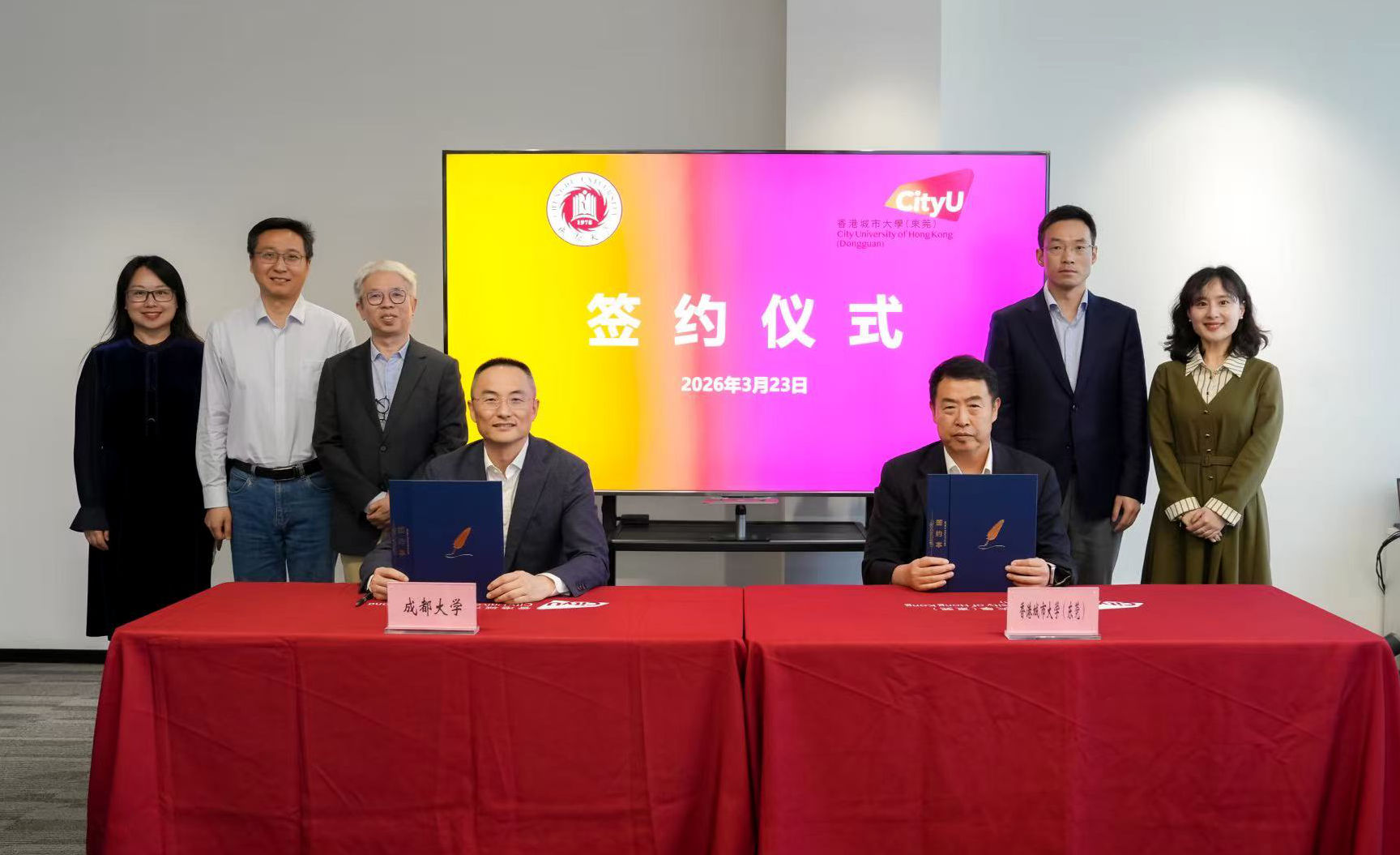 2026年3月23日,党委副书记、校长朱明率团赴香港城市大学(东莞)访问。访问旨在落实成都市政府与香港城市大学达成的市校战略合作协议,推动两校在人才培养领域的深度合作。香港城市大学副校长、香港城市大学(东莞)执行校长鲁春热情接待朱明一行。朱明、鲁春代表两校签署联合培养项目协议。根据协议,双方将在人才培养、科技创新与产业创新深度融合等领域推进务实合作,标志着蓉港两地高等教育协同发展迈入实质性落地的新篇章。朱明感谢港城大(东莞)的热情接待,介绍成都大学坚持“顶天立地”的科研理念,以...