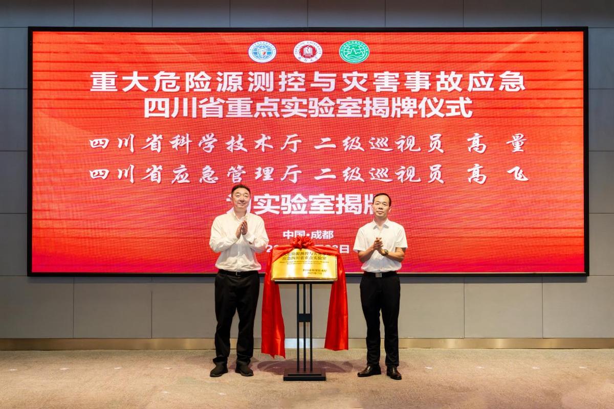 重大危险源测控与灾害事故应急四川省重点实验室”是经四川省科技厅批准,在原“重大危险源测控四川省重点实验室”基础上重整而成,由四川省安全科学技术研究院、成都大学、四川省自然资源科学研究院三方共同建设。高量和高飞共同为实验室揭牌。